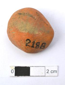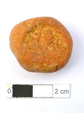 | Description / विवरण | It is an almost circular terracotta sealing of baked clay, the impression of two deer and a wheel in-between can be observed. |