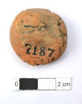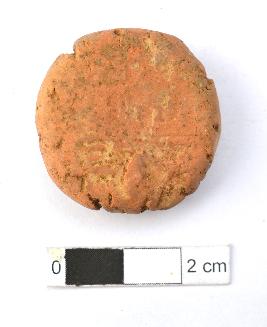 | Description / विवरण | It is an almost circular terracotta sealing of baked clay, the impression of wheel is observed. |