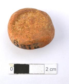 | Description / विवरण | It is an almost circular terracotta sealing of baked clay, the impression of wheel is observed. |