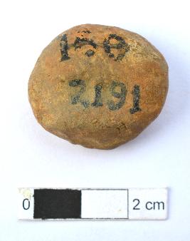 | Description / विवरण | It is an almost circular terracotta sealing of baked clay, the impression is not clear due to weathering. |