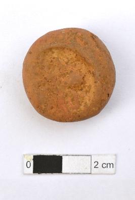 | Description / विवरण | It is an almost circular terracotta sealing of baked clay, the impression of wheel is observed. |