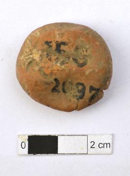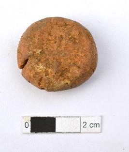| Description / विवरण | It is an almost circular terracotta sealing of baked clay, the impression of wheel is observed. It also have cracks on it. |