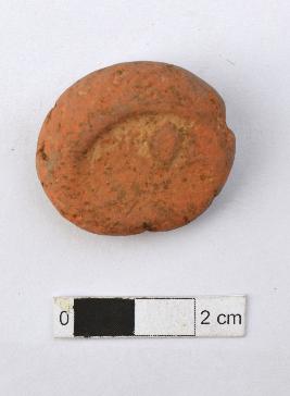 | Description / विवरण | It is an almost circular terracotta sealing of baked clay, the impression of wheel is observed. |