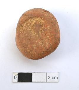 | Description / विवरण | It is an almost circular terracotta sealing of baked clay, the impression of wheel is observed. |