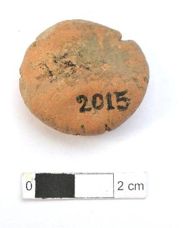 | Description / विवरण | It is an almost circular terracotta sealing of baked clay, the impression of wheel is observed. |