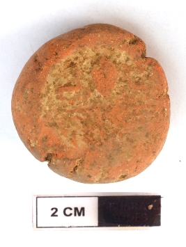 | Description / विवरण | It is an almost circular terracotta sealing of baked clay, the impression of two deer and a wheel in-between. |