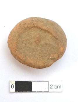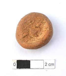 | Description / विवरण | It is an almost circular terracotta sealing of baked clay, the impression of two deer and a wheel in-between is observed. |