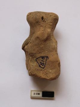 | Description / विवरण | A terracotta human figurine (female figurine). It is dull red and gray in color and broken in condition. |