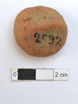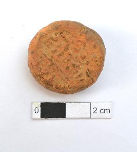 | Description / विवरण | It is an almost circular terracotta sealing of baked clay, the upper half, which is separated from the lower by double horizontal line, depicting two deer and a wheel in-between. |