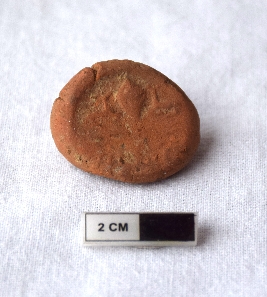 | Description / विवरण | It is an almost circular terracotta sealing of baked clay, the impression of two deer and a wheel in-between is observed. |