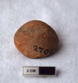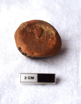 | Description / विवरण | It is an almost circular terracotta sealing of baked clay, the impression of wheel is observed. |