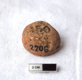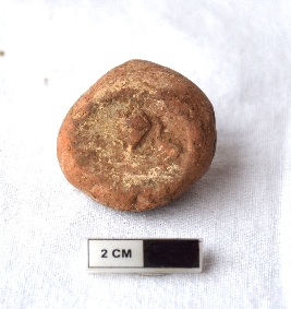 | Description / विवरण | It is a terracotta sealing of baked clay, the upper half, which is separated from the lower by double horizontal line, depicting two deer and a wheel in-between. |