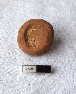 | Description / विवरण | It is a terracotta sealing of baked clay. The upper half, which is separated from the lower by double horizontal line, depicting two deer and a wheel in-between. |