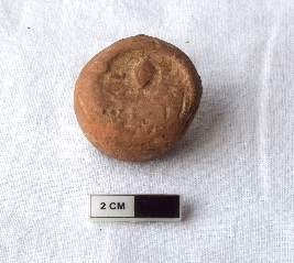 | Description / विवरण | It is an almost circular terracotta sealing of baked clay, the impression is not clear due to weathering. Two deer and a wheel in-between are present. |