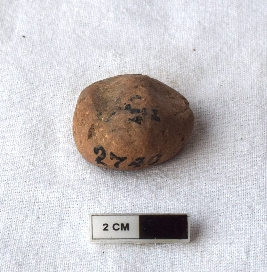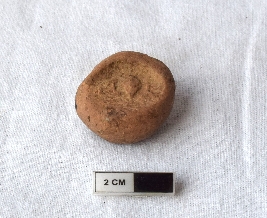 | Description / विवरण | It is a terracotta sealing of baked clay, the impression is not clear due to weathering. A wheel can be observed in the middle of the sealing. |