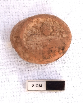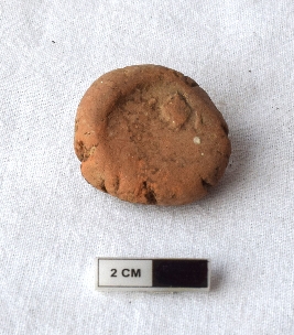 | Description / विवरण | It is an almost circular terracotta sealing of baked clay, the impression is not clear due to weathering. The impression of wheel is observed. |