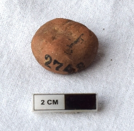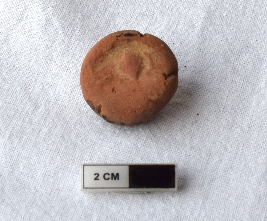| Description / विवरण | It is an almost circular terracotta sealing of baked clay, the impression is not clear due to weathering. A wheel can be observed in the middle of it. |