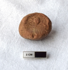 | Description / विवरण | It is an almost circular terracotta sealing of baked clay, The faded impression of a wheel and a deer is observed on the seal. |