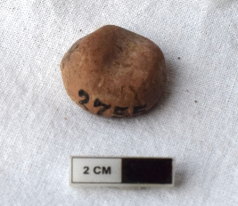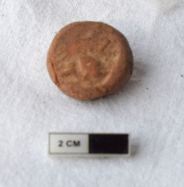 | Description / विवरण | It is an almost circular terracotta sealing of baked clay, the impression is not clear due to weathering but on physical examination one can observe impression of two deer and a wheel in-between. |
