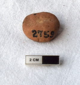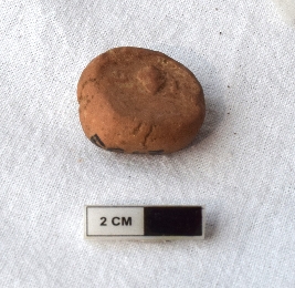 | Description / विवरण | It is an almost circular terracotta sealing of baked clay, there is an impression of a faded of two deer and a wheel in-between. |