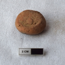 | Description / विवरण | It is an almost circular terracotta sealing of baked clay, there is a faded of wheel. |