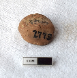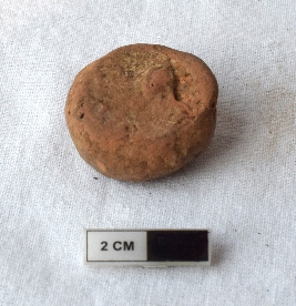 | Description / विवरण | It is an almost circular terracotta sealing of baked clay, there is a faded impression of wheel. |