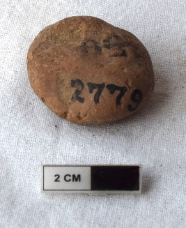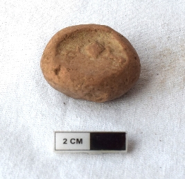 | Description / विवरण | It is an almost circular terracotta sealing of baked clay. The upper half is separated from the lower by double horizontal line, depicting two deer and a wheel in-between. |