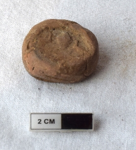 | Description / विवरण | It is a terracotta sealing of baked clay, depicting two deer and a wheel in-between. |