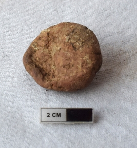 | Description / विवरण | It is an almost circular terracotta sealing of baked clay, the impression is not clear due to weathering. |