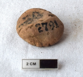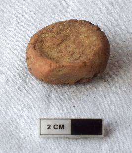 | Description / विवरण | It is an almost circular terracotta sealing of baked clay. The impression of wheel is observed. |