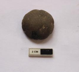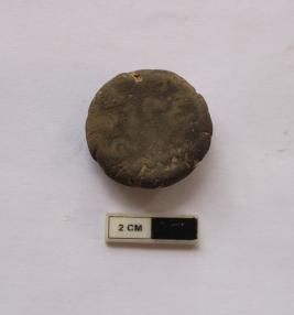| Description / विवरण | A terracotta sealing a circular shape. It is gray in color and impression marks are unclear. |
