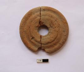 | Description / विवरण | A terracotta wheel in a circular shape. It is broken in condition and red in color. |