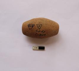 | Description / विवरण | A terracotta bead in a biconical shape. It is partially damaged and red in color. |