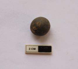| Description / विवरण | A sling ball in a spherical shape. It is gray in color. |