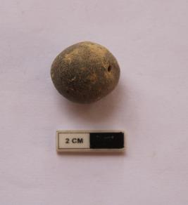| Description / विवरण | A terracotta bead in a globular shape. It is gray in color. |