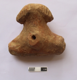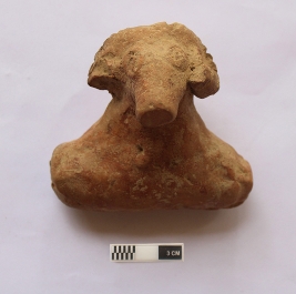 | Description / विवरण | A terracotta toy cart which has an animal head. It is red in color. |