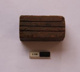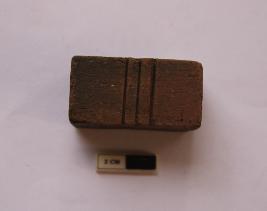 | Description / विवरण | It is a terracotta weight which is dull black and red in color. Incised lines are visible on the surface. |
