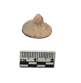| Description / विवरण | A terracotta gamesman with a circular disk shaped bottom and a conical knob, has an earthen color surface with a smooth texture. |