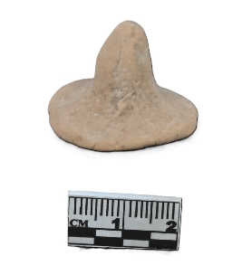 | Description / विवरण | Terracotta gamesman with a circular base and a crudely modelled small, tapered knob with a conical top. The base is slightly concave at the bottom. It is dull red to brown in color. |