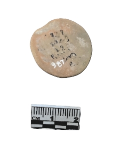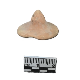 | Description / विवरण | A well baked terracotta gamesman with a circular disk shaped flat base and a conical knob.It is dull red in color . |