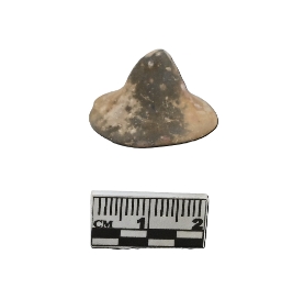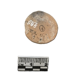 | Description / विवरण | Terracotta gamesman with a concave circular disk type lower portion and a tapered knob which appears truncated or broken at the top. The surface looks red and black in color . |