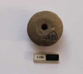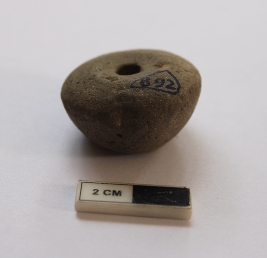 | Description / विवरण | An arecanut shaped bead. It is gray in color and partially damaged in condition. |