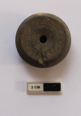 | Description / विवरण | An arecanut shaped bead. It is gray in color and partially damaged in condition. |