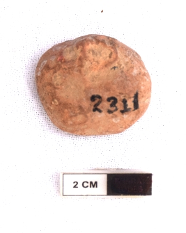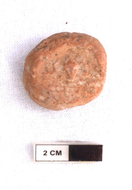 | Description / विवरण | It is an almost circular terracotta sealing of baked clay, The upper half, which is separated from the lower by double horizontal line, depicting two deer and a wheel in-between. |