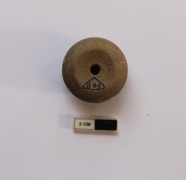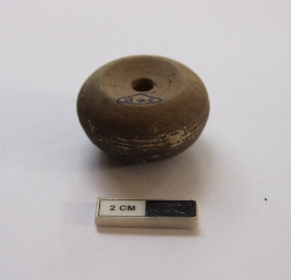 | Description / विवरण | A terracotta arecanut shaped bead. It is dull grey in color. |