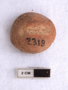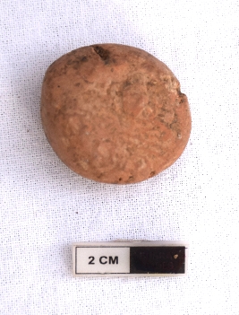 | Description / विवरण | It is an almost circular terracotta sealing of baked clay, the impression of wheel a can be observed. |