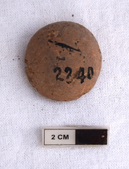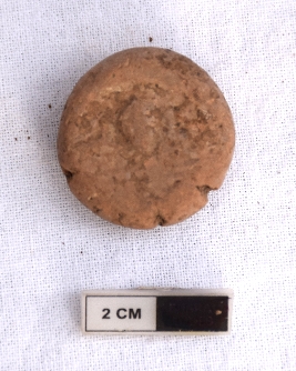 | Description / विवरण | It is an almost circular terracotta sealing of baked clay, the impression of two deer and a wheel in-between is observed. |
