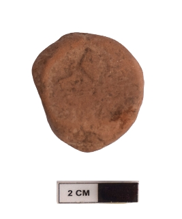 | Description / विवरण | It is an almost circular terracotta sealing of baked clay, the impression of two deer and a wheel in-between is observed. |