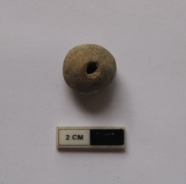 | Description / विवरण | A terracotta bead in a globular shape. It is gray in color. |