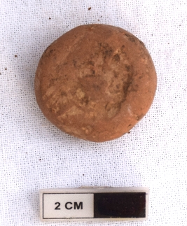 | Description / विवरण | It is an almost circular terracotta sealing of baked clay, the impression of wheel is observed. |
